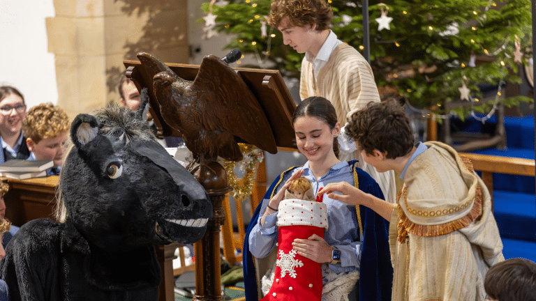 On the final weekend of school this year our Prep and Senior pupils enjoyed a festive Nativity Service in Chapel. They had enormous fun singing Carols and watching a hilarious adaptation of the Nativity story written and performed by Senior School drama pupils. The star of the show was the wonderful ‘Pantomime Donkey’ who made a dramatic entrance into Chapel to help Mary and Joseph in their hour of need.