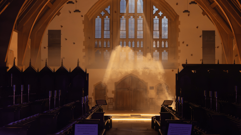 A special light installation named ‘The Light of Peace’ was set up in Chapel