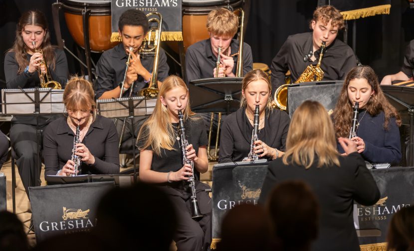 Last Wednesday, Fishmongers’ Hall saw Gresham’s Guitar Ensemble, String Ensemble and Concert Band deliver a diverse range of instrumental performances, from melodic Mozart to Pop/R&B and Big Brass bangers.