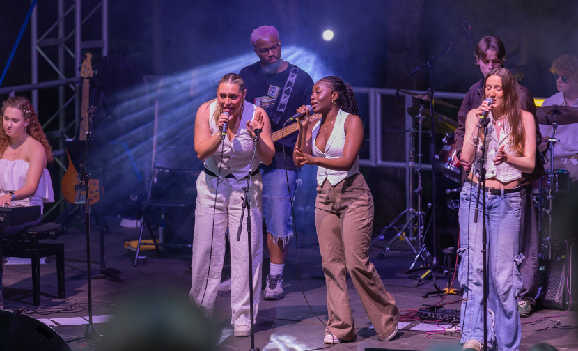 The night began with a heartfelt rendition of See You Again by Jemima T and Eduvie O, supported by Milan H, Benny S, Timothei F the brass section. Following this, Empire State of Mind saw the addition of Heidi W and OG Jethro Holmes to the stage, along with the brass, creating a powerful and harmonious soundscape.