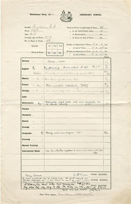 School Reports Archives > Benjamin Britten (1928-30) > Britten Archives > School Reports Images reproduced courtesy of the Britten-Pears Foundation (www.brittenpears.org)