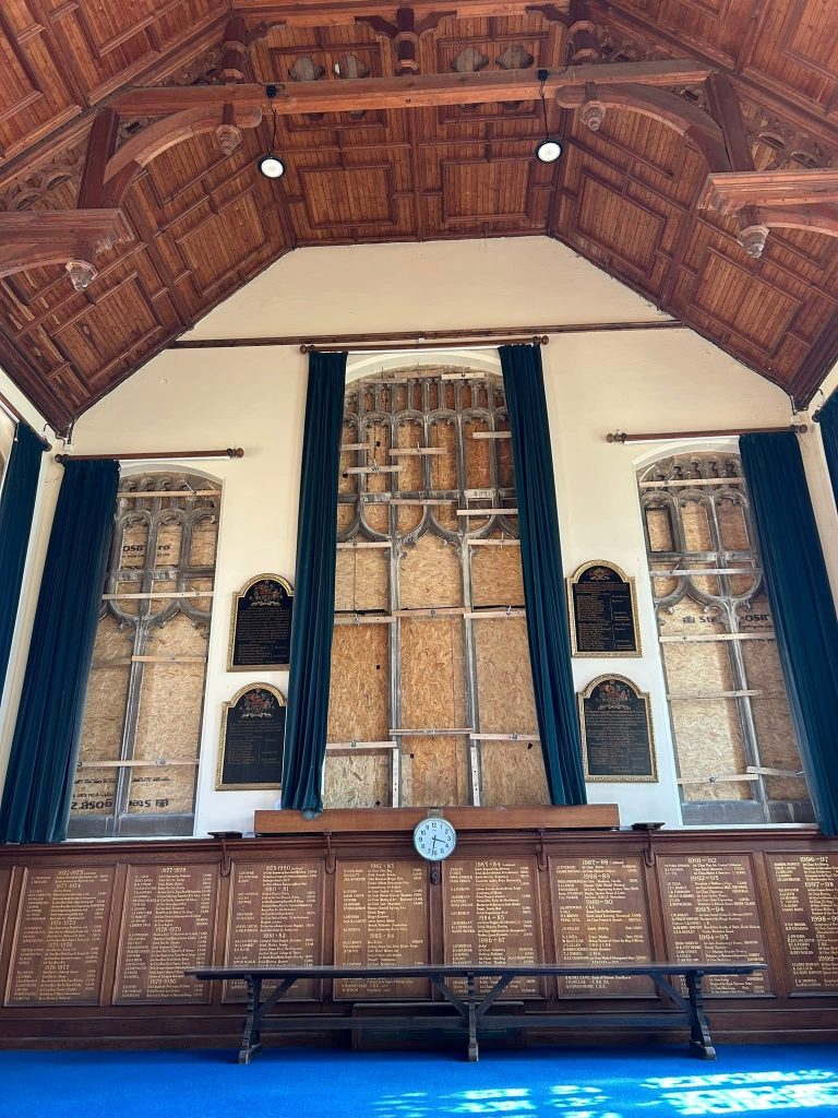 A remarkable chapter in Gresham’s history has come full circle with the recent restoration of two stunning stained-glass windows to Big School Hall, exactly one hundred years after their original installation.