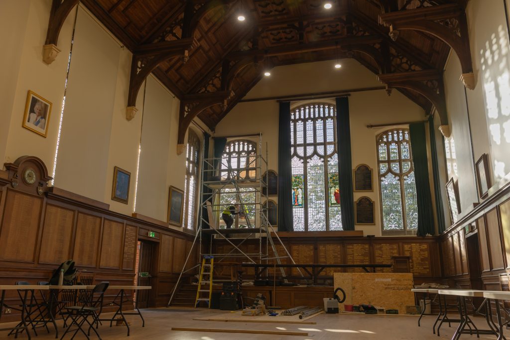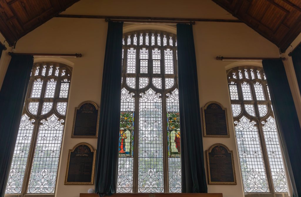 Now, thanks to the expert craftsmanship of Devlin Plummer Stained Glass, who specialise in the conservation and restoration of stained windows and lead glazing work, the windows (both stained and non-stained) have been restored to their original splendour. Their return not only enhances the architectural beauty of Big School Hall but also reconnects the present-day school with its rich artistic and historical legacy.