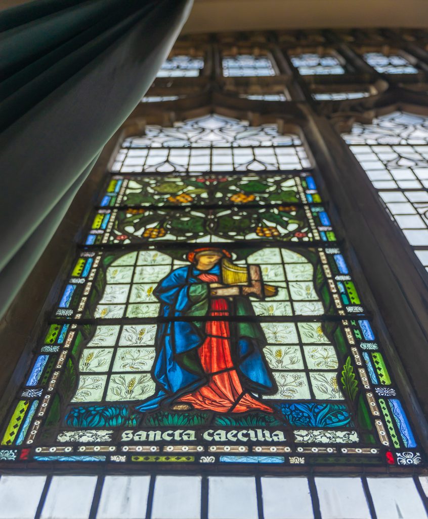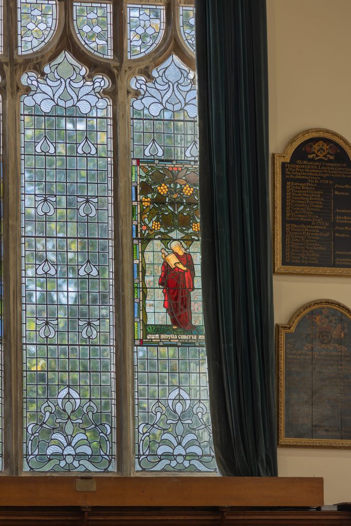 The windows, depicting St Cecilia and the Cimerian Sibyl, were originally gifted to the school in 1925 by Mr D.A Wynne Willson, on his retirement. Crafted by the renowned firm Morris & Co. from designs by Sir Edward Burne-Jones, these works of art are part of a trio of stained-glass lights. The third window in the set now resides in Frome Church, Somerset.