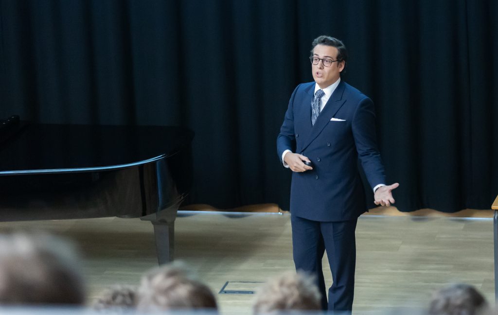 Last Monday, we welcomed Hugo Barker to speak to Year 13 pupils about careers, resilience, and the many routes into geopolitics and public policy. Now Chief of Staff at the Defence, Security and Resilience Bank (DSRB) and a PhD scholar at Imperial College London, Hugo shared his non-linear journey and encouraged pupils to embrace adaptability, curiosity and learning through failure.