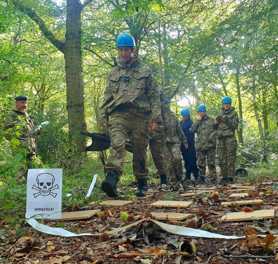 A group of 24 Year 11 & 12 cadets spent the first day of the October half term break on the CCF Junior Leadership Course. In an intense day of activity they were all introduced to leadership in practical tasks, taking command of teams in scenarios that varied from saving casualties, crossing simulated minefields, building watercourses and re-constructing sabotaged information. They all performed at a very high standard and the future looks very bright for CCF leaders in the future.