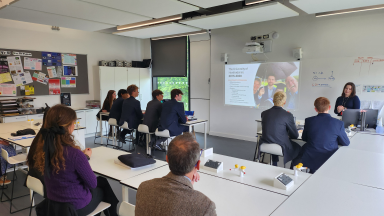 Charlotte Ambrose MPhys ASEP MInstP MINCOSE MWES visited our Year 12 Physics pupils to talk to them about her career path to becoming a Systems Engineer and her 5-year university education, leading to a Masters degree in Astrophysics. Charlotte shared some of the exciting projects she has been part of, including sensing software for stealth aircraft, designing and building satellites, and conceptual aircraft designs.