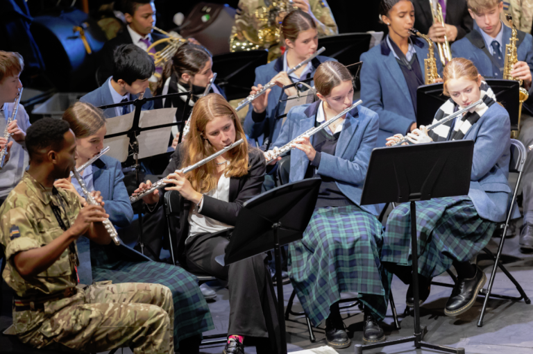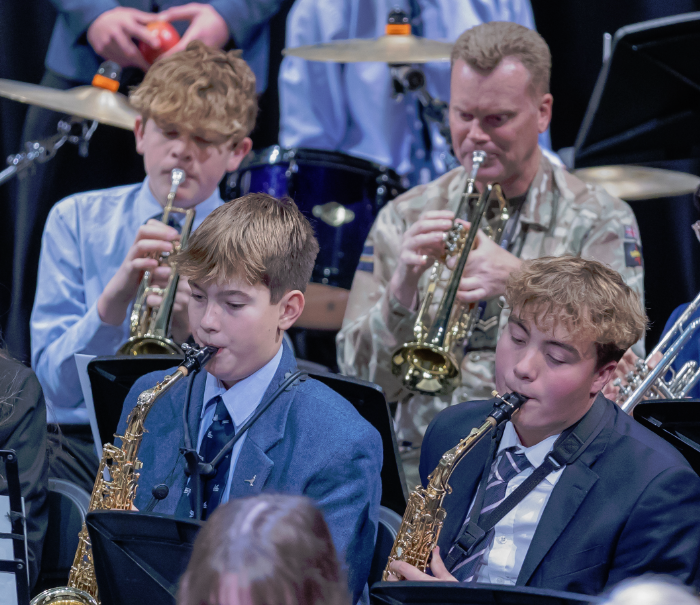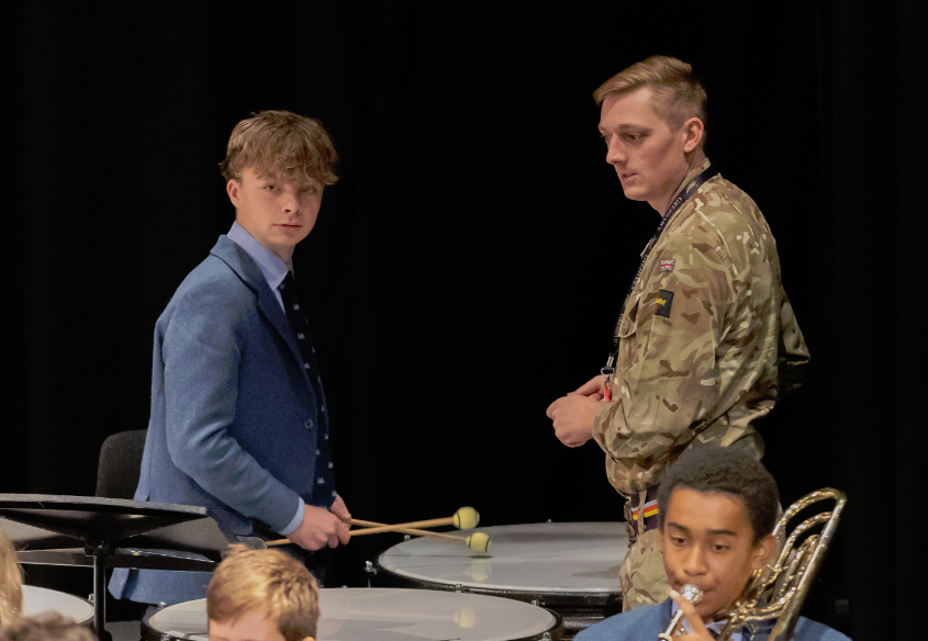 Playing in and amongst the professional Army musicians most certainly gave the pupils confidence. A break in the day allowed the Army careers’ officer to tell our CCF contingent about life in the military and the many avenues available to anyone interested. From vets, medical staff, accountants, chefs, engineers, the options were endless. From a music point of view SSgt Dolor explained what life as a musician in the Army involves with bursaries on offer and excellent musical tuition as well as the opportunity to travel. The day concluded with a small concert, open to family, to play through the pieces learnt over the day.