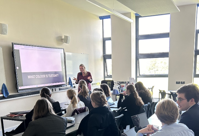 In addition to super-recognition, the Colloquium explored the fascinating phenomenon of synaesthesia—a condition where senses merge, allowing people to experience one sense through another. For example, pupils discussed how some synaesthetes might associate specific colours with days of the week, answering the curious question, ‘What colour is Tuesday?’ (With responses ranging from green to yellow).