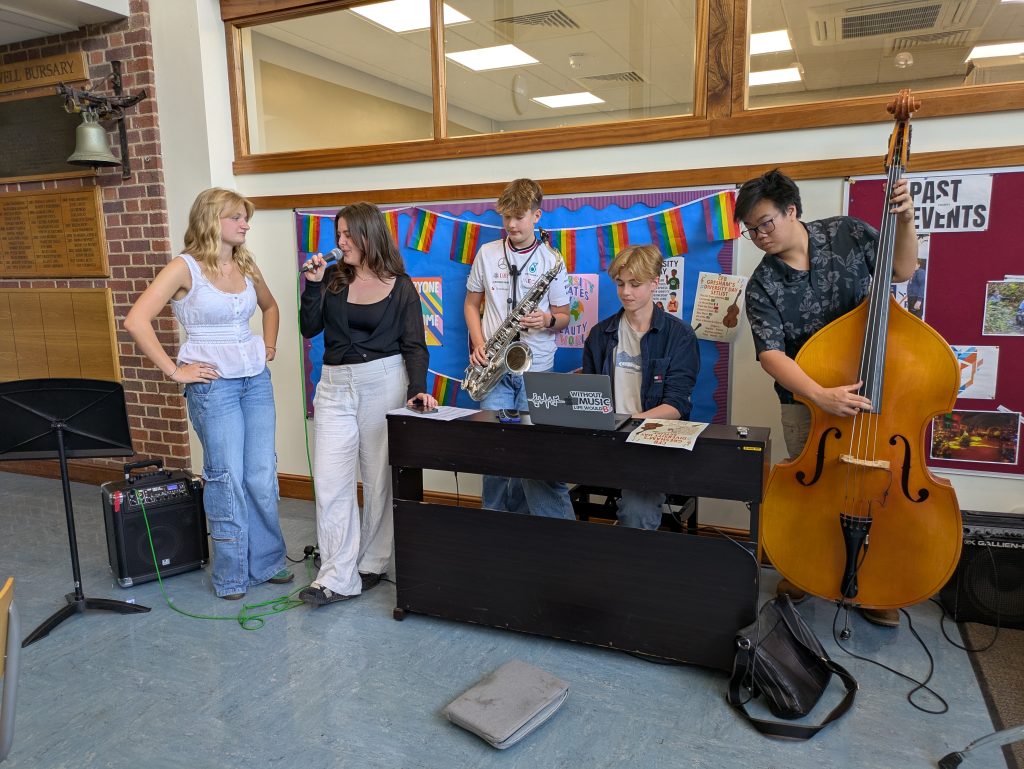The celebrations continued into breaktime with a tea party of colourful cakes and drinks. Pupils came along and discussed their outfits and explained the meaning behind their clothes and why this aspect of themselves was one they wanted to express today. Then at lunchtime, we were all treated to a fantastic jazz concert in the CFB, orchestrated by Benny and Timo and their talented band, designed to showcase a diverse range of music from around the world.