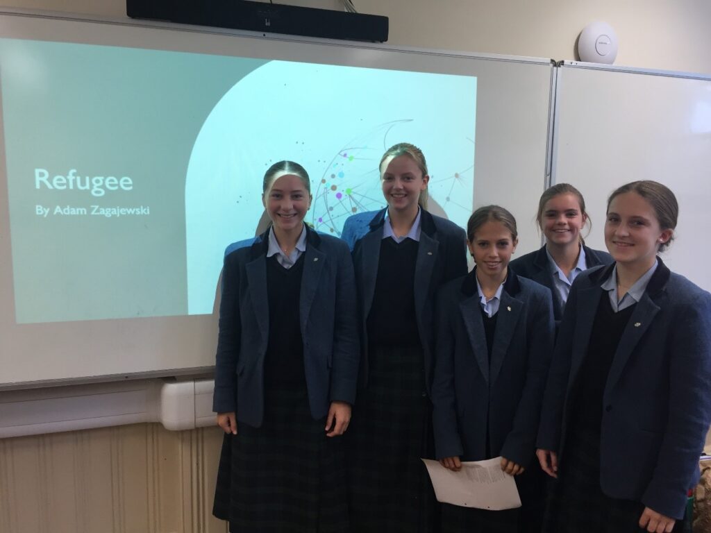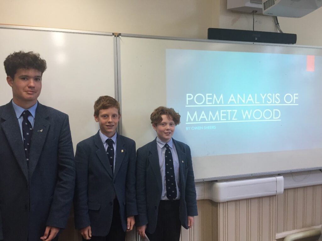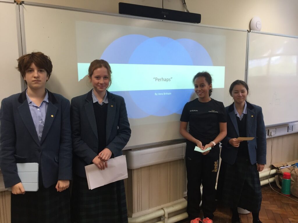 In English lessons this half-term Year 9 students have been studying a range of poetry, written by a variety of poets, all linked by the theme of conflict. This unit of work is very much designed to enhance the students’ experience on the History Department’s trip to the WWI battlefields in Ypres. In Mrs O’Donnell’s class, students were assigned a ‘conflict’ poem to present to the class in House ‘teams’. The results were newsworthy! The presentations showcased the students’ research skills, IT skills and presentation skills – and, most satisfying of all, their growing confidence to independently analyse poetry with an insight that will serve them well at GCSE. Some of the poems we were treated to included Evacuee by Isobel Thrilling, To My Brother and Perhaps, both by Vera Britten, Mametz Wood by Owen Sheers and Refugees by Adam Zagajewski.