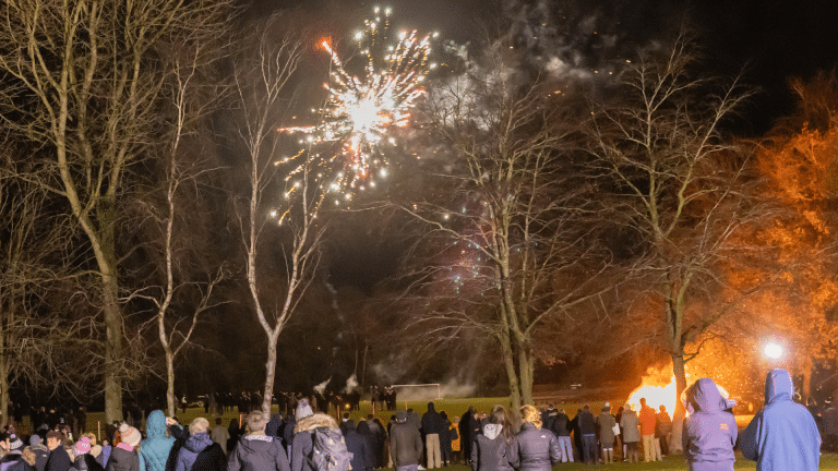 After the bonfire was lit, Rev Jack retold the Nativity to the gathered crowd using chocolate bars which finished with a tremendous display of fireworks.