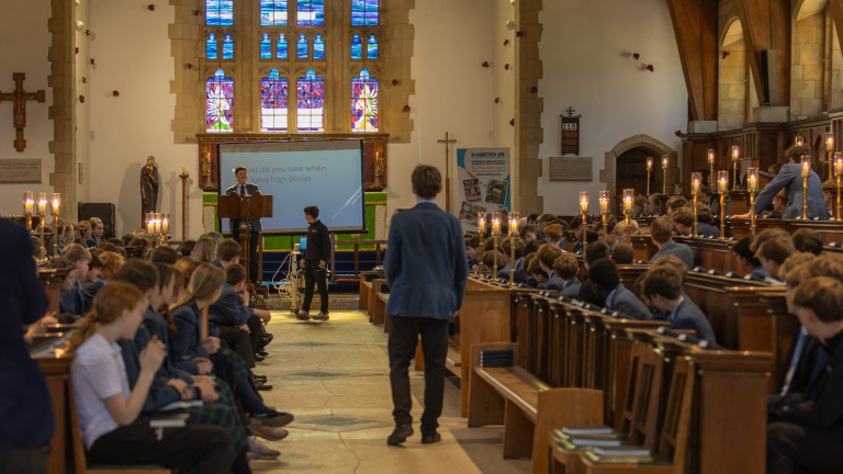 Last week four Year 9 pupils bravely stood up in front of the whole school in Chapel to deliver an excellent talk on Diabetes. Harry, Isaac, Will and Alex included a fun quiz in their presentation which ensured everyone left feeling both entertained and better informed.