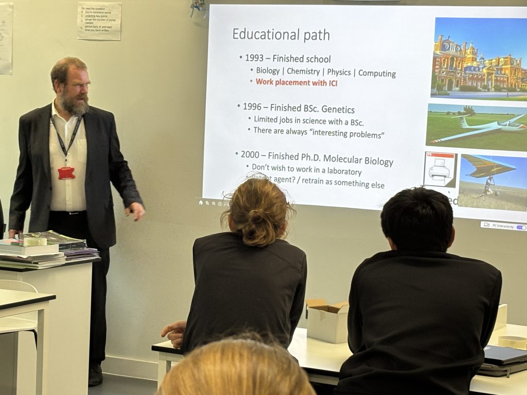 During STEAM week, Dr Stephen Rudd, geneticist, bioinformatics specialist and Director of Oxford Nanopore Technologies Ltd, visited Gresham’s to speak with Biology pupils, offering expert insight into his work and showcasing the significant career potential within genetics, bioinformatics and DNA sequencing.