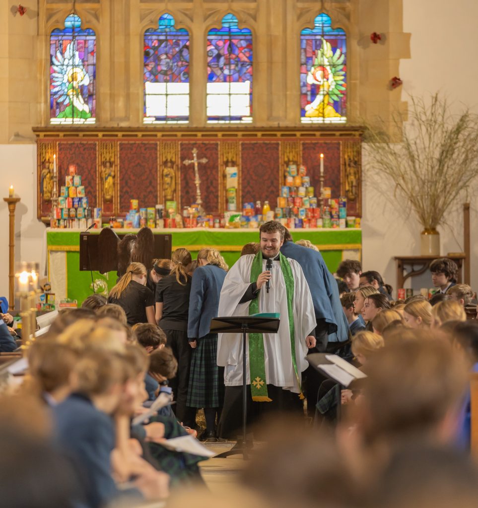 Outside the Chapel, tractors and sheep stood proudly, setting the scene for a lively and meaningful event. Inside, staff and pupils came together to honour the season’s bounty and celebrate all things food related.
