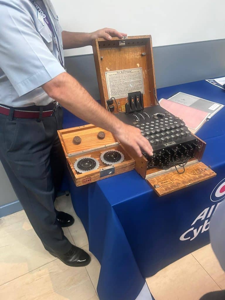 In addition to success at ACLC, Sgts K and E Tallinn attended a Gold Cyber Course at RAF Cosford over the summer. Trained by the RAF’s Cyber Security Flight at No1 Radio school, they covered threats, defence, cyber offensive and more specialist subjects like SCADA systems. With only 16 Cadets on the course, they got access to some high-quality training with the RAF that will help them with their IB studies back in the classroom. Once they finished the course, they even got to have a play with an original Enigma Machine that’s kept at RAF Cosford as a reminder of the importance that cyber has had throughout recent history.