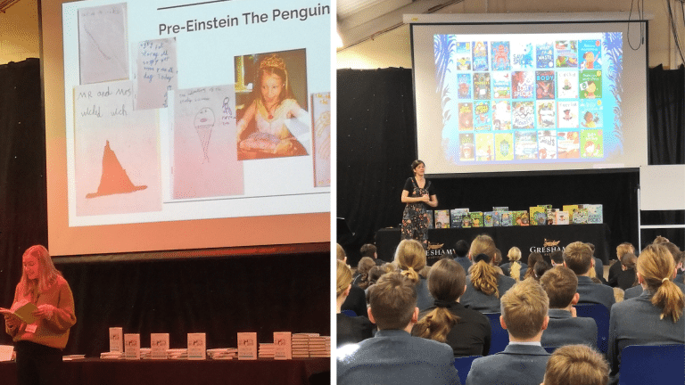 Years 3, 4 and 5 were treated to a fantastic talk about the creation of the ‘Einstein the Penguin’ series by children’s author and Old Greshamian, Iona Rangeley. Also Year 6 – 8 had a wonderfully inspiring talk from Dr Jess French about writing for different purposes and audiences taking us into the depths of rainforests and beyond!