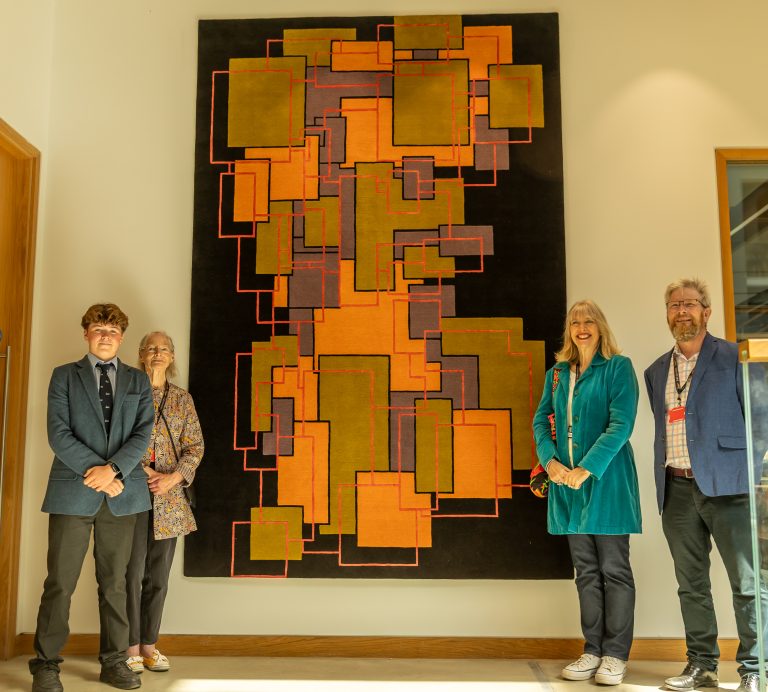 A number of pupils and teachers were on hand to see the unveiling. The fabulous pieces of art were designed by Year 10 pupils Lachlan M and Miriam G, expertly made by the Deirdre Dyson Carpet company, and commissioned by one of the School’s most generous art benefactors – the Sir Colin Anderson Memorial Trust.