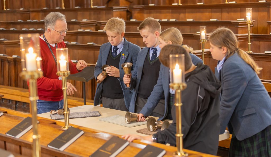 Last Saturday some of our Prep and Senior pupils were given the opportunity to learn about the wonderful world of bellringing at a special workshop in Chapel. Pupils had the chance to ring: handbells; electronic bells and the bells on a mini church tower which was constructed at the West End of the building. Those taking part also enjoyed learning about the ancient craft of bell rope making. A superb time was had by all.