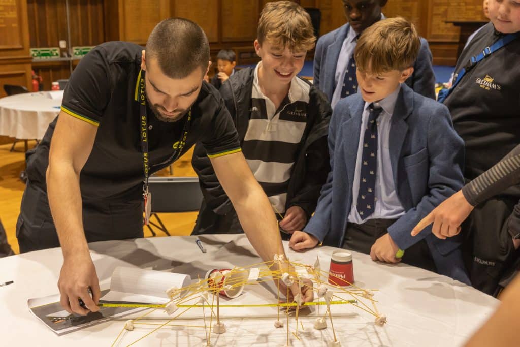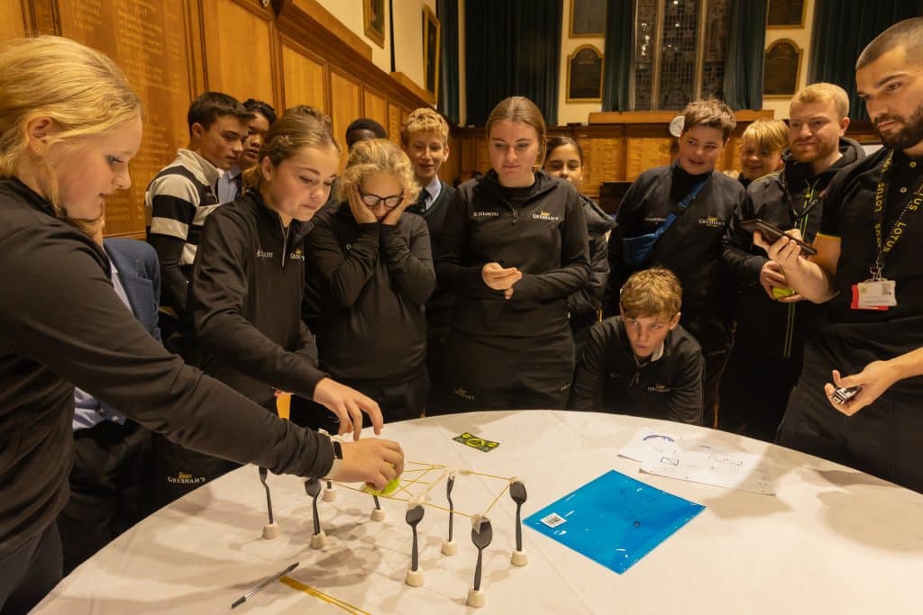 As part of our STEAM enrichment weeks, Lotus Cars ran a STEAM inter-house competition held in Big School. Pupils had to design a spaghetti bridge before buying resources using ‘Lotus dollars’ and then building a bridge that could hold objects at least 14cm off a table. Lotus had never seen such a closely matched draw in this competition in its history. Oakley, Edinburgh and Farfield were all joint winners and Lotus are preparing prizes for the winning houses. Thank you to all that took part.