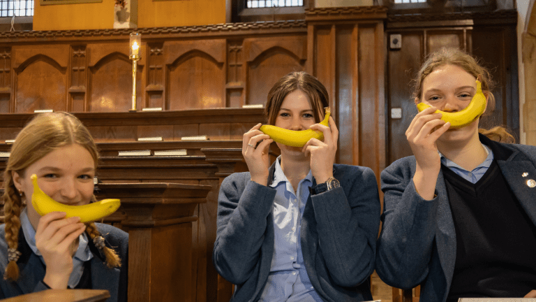 Senior and Prep pupils have been pondering the environmental and societal impact of our food choices in Chapel during Fairtrade Fortnight. Lots of fun was had with Fairtrade bananas and chocolate, as they learned how they can support producers in protecting the planet and the future of some of our most-loved food.