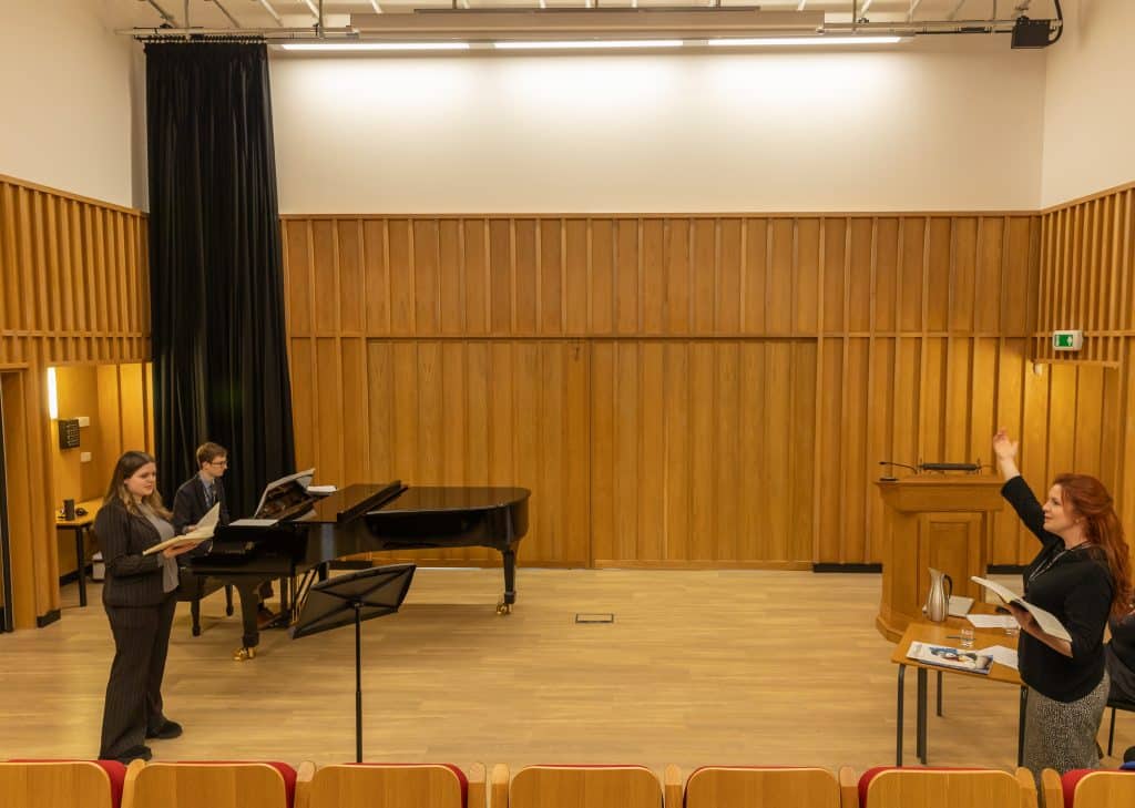 As part of the Sir John Hurt vocal masterclass series kindly supported by Lady Hurt, on 14th November we welcomed Kitty Whately back to Gresham’s. She is currently taking the English song class at the Royal College of Music so this was a step up for many of the singers. The first half of the day was spent working in detail with the most advanced singers in the school on pieces from German Lieder, French Melodie, English song, Oratorio, musical theatre Pop and Opera. In the latter part of the day some of the newer singers in the school took part in a group session working together with Kitty on their various pieces, exploring the nuances that can be found within a high level of vocal performance.