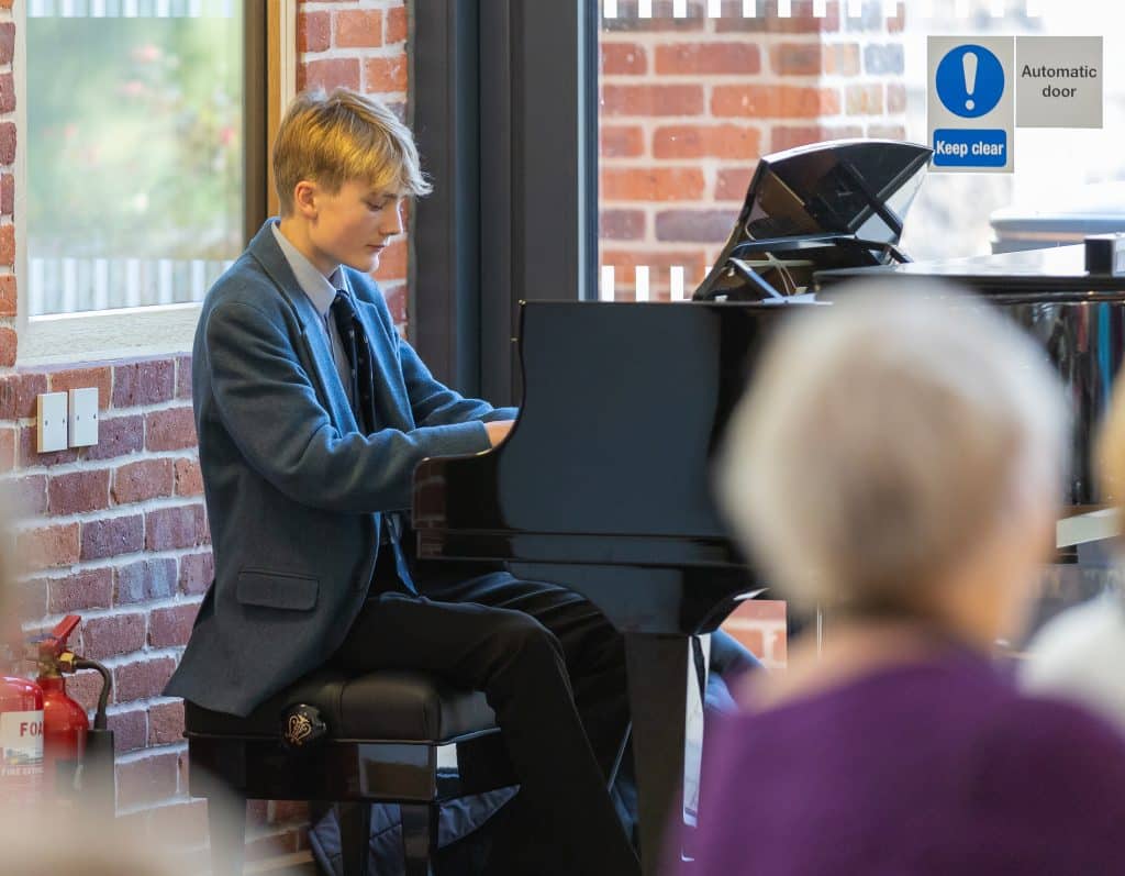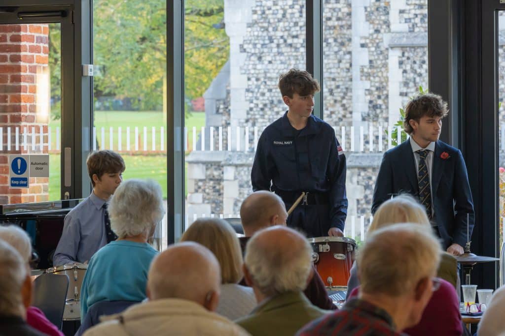 Music & Munch, our community informal concert series, welcomed record numbers in the audience on Friday 10th November, with pupils performing to a packed Tig’s Café. Opening with Percussion Ensemble, followed by the newly formed Guitar Ensemble, this was a concert of firsts. David R sang for the first time, Ruby S and Tamsin S performed songs from their recent conservatoire auditions and a wonderful performance from Peter R on piano, and Heidi W on voice and piano.
