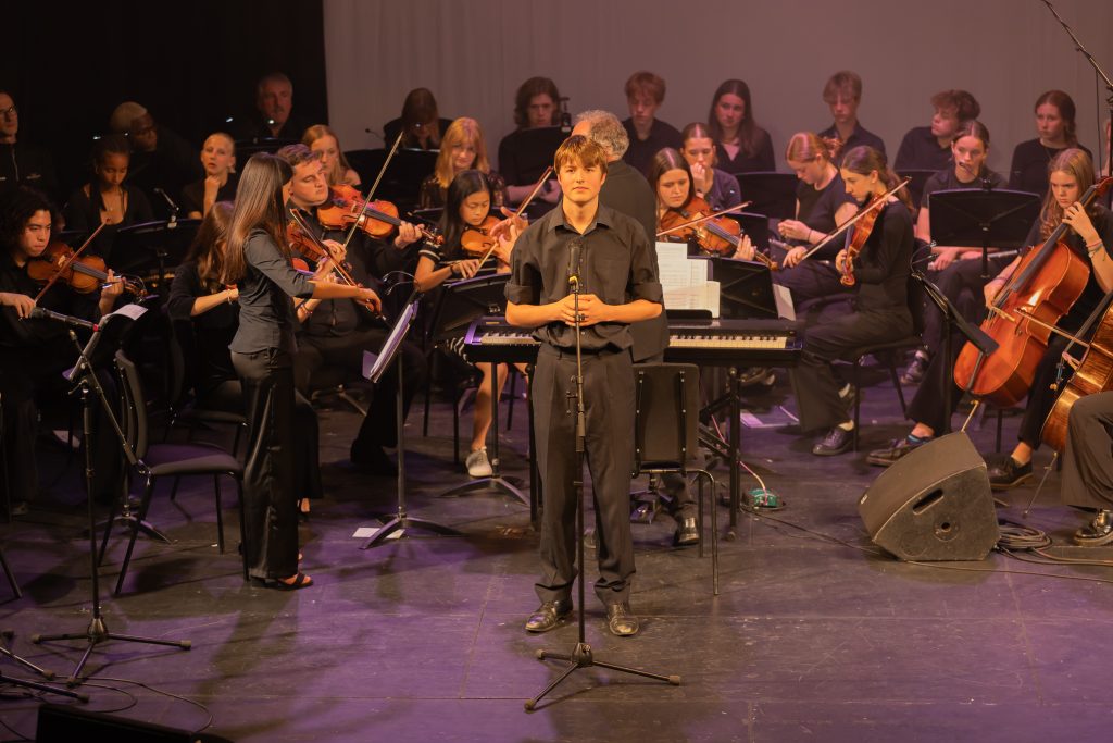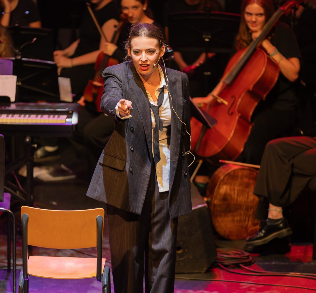 Jemima T then took the spotlight to discuss her journey and achievements, concluding with her emotive performance of Oscar Winning Tears, which left the audience in awe. The orchestra was directed by Thomas Carr, and we sadly bid him farewell after four spectacular years at Gresham’s.