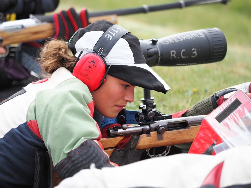 During the Imperial Meeting, there are two Schools team matches that run concurrently with the Grand Aggregate. The Gresham’s Rifle Club team of Georgina B, Oliver R, Grace S, and Alexandre S were able to outshoot all the other schools to take first place and win the Garry Jones Trophy. Things didn’t go quite so well for the Anstey Trophy, as the same Gresham’s team had to settle for a 6th-place finish in this competition.