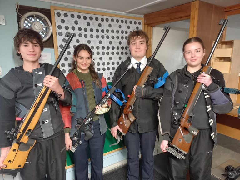 Following the qualifying round, four pupils from Gresham’s School earned places in the 12-strong British Schools squad. Amir R qualified as the top shot in the country, achieving an outstanding score of 493 out of 500. Bella B, Ilana B and Henry J also performed strongly to secure their places in the final 12.