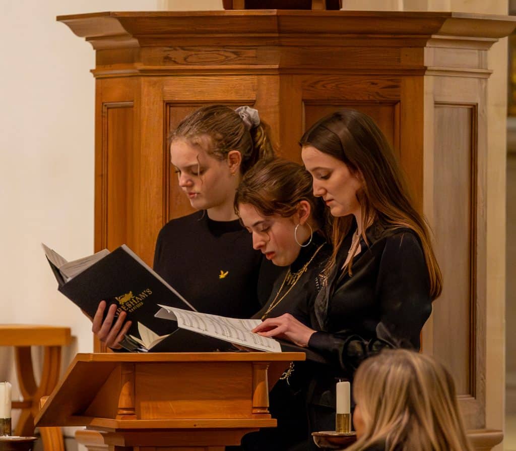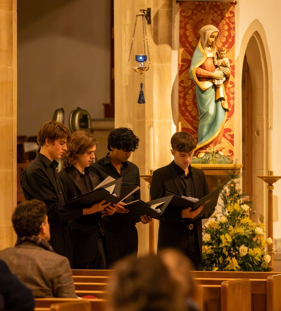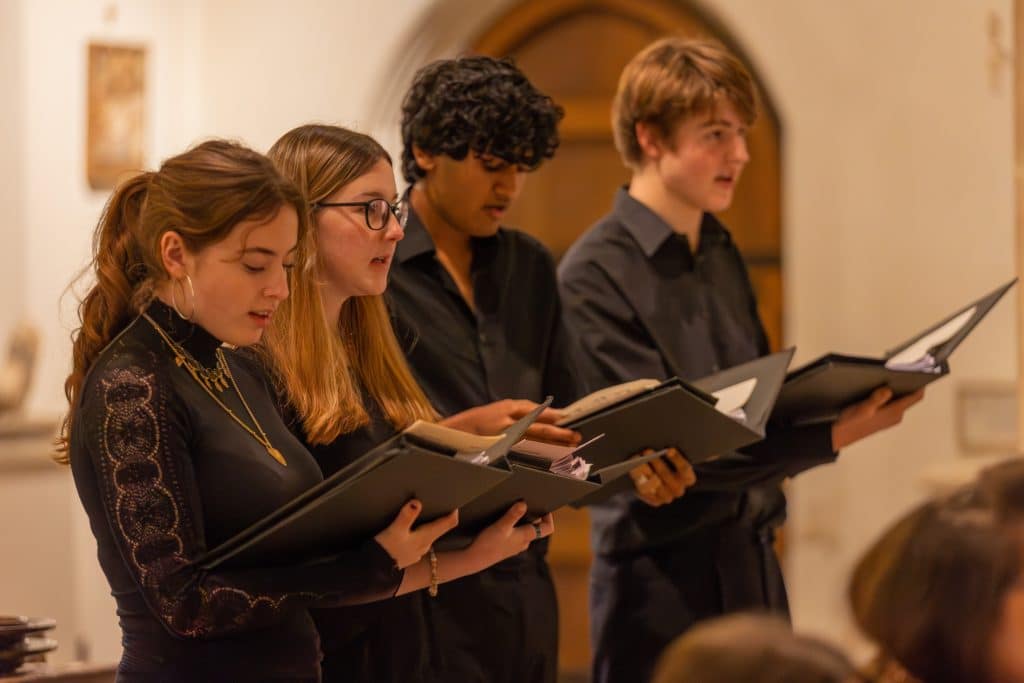 On a typically very unpleasant evening in February, a small but appreciative audience were treated to what Mr Robb, Headmaster, described as ‘one of the best choral concerts he’d ever heard during his time at Gresham’s’. Advent to Ash Wednesday was the theme for Schola Cantorum’s mid-winter concert in St Mary’s Church in Walsingham on Friday 9th February. The programme gave several of the choir opportunities for solos and included many sacred favourites, such as Britten’s A Hymn to the Virgin, a contemporary setting of In the Bleak Midwinter, Allegri’s Miserere and Pergolesi’s Magnificat. A string quartet consisting of Isadora A, Ilana B, Lucy D and Zinnia-Claire B accompanied the Pergolesi with the violins providing instrumental accompaniment for Elgar’s lyrical piece, The Snow. Other secular pieces included a choral arrangement of Fields of Gold, Over the Rainbow and Blow, Blow thou Winter Wind. Given the theme of the evening, We need a little Christmas justified its place in the programme and reminded everyone of one of the jolliest times of the year!