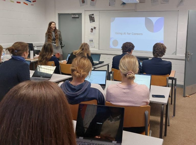 On Thursday, Izabella Bessenyey, Gresham’s AI Consultant, who works with teaching staff and pupils on the effective use of AI as a learning tool, visited Arkell House during tutor time to deliver a joint session with Gresham’s Careers focused on using AI for careers.