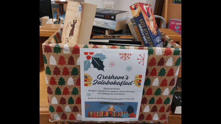 Before Christmas, the School Library organised a book swap inspired by the Icelandic tradition of Jolabokaflod which roughly translates as flood of books and involves friends and family gifting and receiving new books. Our Gresham’s version focused on donating books which readers had already read and swapping them for fresh reading material donated by others. Lots of books were successfully swapped with remaining titles passed on to charity.