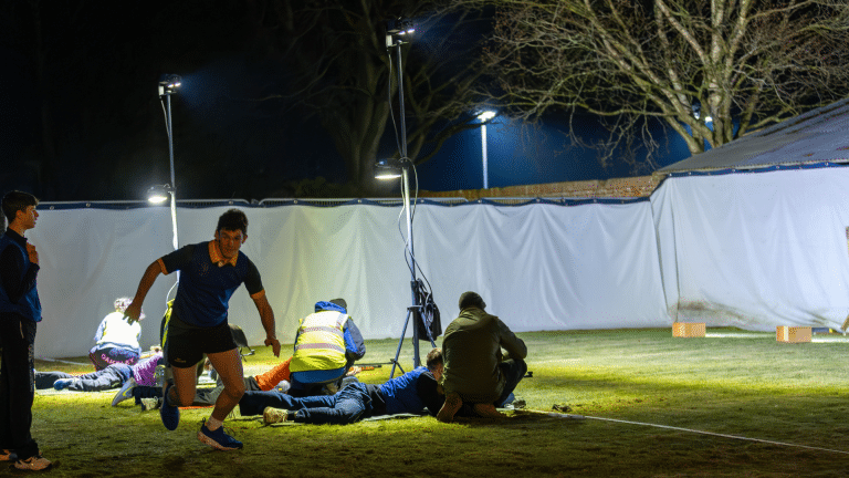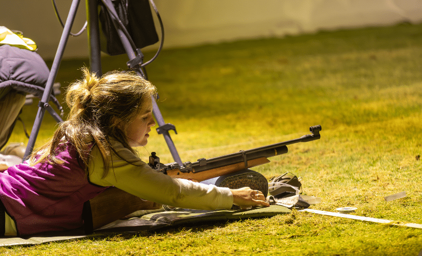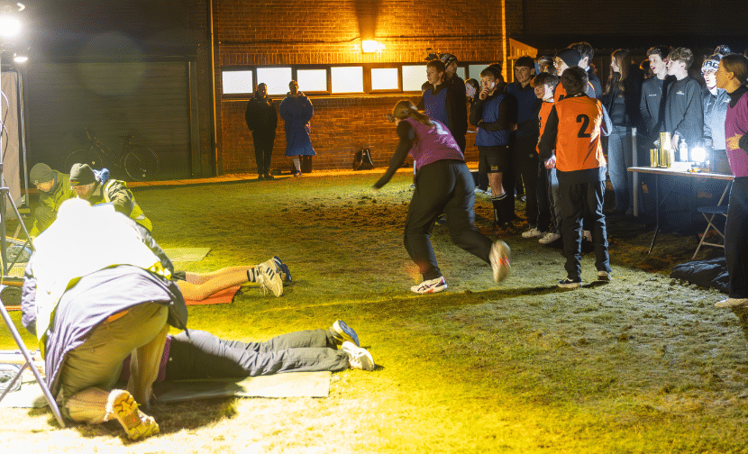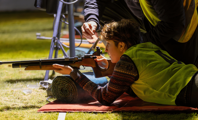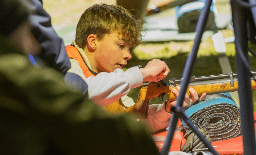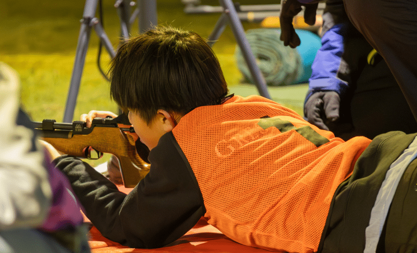 The Gresham’s School Inter-House target sprint competition recently took place at the end of January. Each of the seven Houses entered a Junior team (Year 9 & Year 10) of five competitors and a Senior team (Year 11, Year 12 & Year 13), also containing five competitors. There were eight Senior teams for the first time, as we welcomed Arkell into the competition. The event has been adapted slightly, in order to make it very spectator friendly and also to allow those who had not done very much shooting the opportunity to be competitive. Each competitor was required to run 200 meters before coming into the air rifle range and shooting down five targets. Once the five targets had been knocked down then the next runner set off around the track. The event was made slightly more exciting as it was run under floodlight, at 8 o’clock in the evening. Both the track and the range were floodlit to create a wonderful atmosphere.
