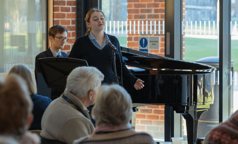 The first concert of 2024 and the new term was Music & Munch on Friday 19th January. Despite it being a cold and frosty day, a decent audience came along to enjoy a programme of singing, guitar and piano performances. Edward DM topped and tailed the lunchtime concert, with a lively guitar performance of Iron Maiden’s The Trooper and brought things to a close with the more relaxing 1st movement of Beethoven’s Moonlight sonata. In between, Hennie D, Tristan B, Tilly R, Lucy C and Olivia E sang and Thomas S and Peter R played the piano.