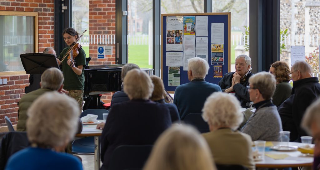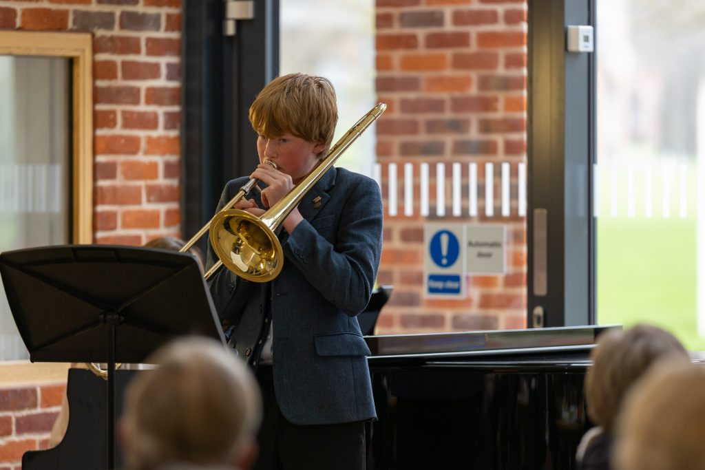 Gresham’s informal concert series had another triumph in April, as Music and Munch featured an eclectic mix of music for solo piano, violin, voice, trombone and piano duet. Well done to Milan H, Belle W, Beatrice G, Isadora A, Fergus R, Mia W, Jake O and Amelie H, who all performed to a wonderfully high standard to the appreciative audience. The next Music and Munch is on Friday 19th May. All are welcome to Tig’s café from 12:50pm for a light lunch and to enjoy the concert.