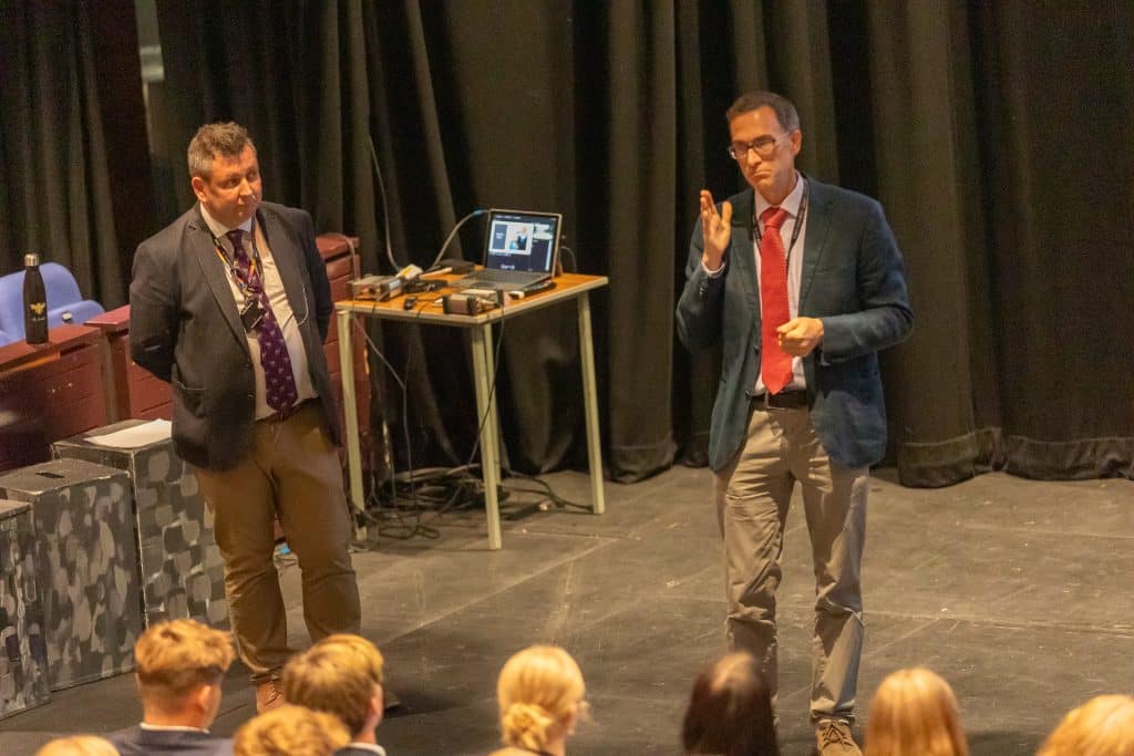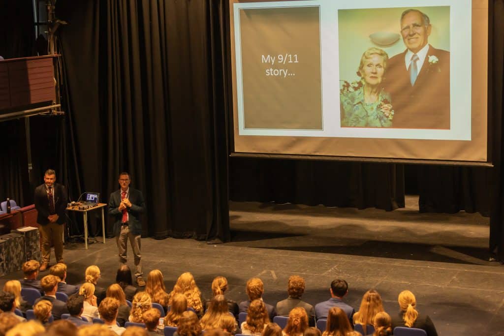 The enrichment lectures got off to a superb start with a presentation on the Impact of World Disasters, marking the 22nd Anniversary of 9/11. Gresham’s Historians Mr Kinder and Mr O’Donnell delivered a poignant talk and historical timeline to a packed sixth form pupil audience in the Auden Theatre.