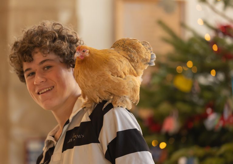 A Year 10 pupil, who volunteers on the farm as part of his Duke of Edinburgh Award, proudly introduced one of the animals to the delighted Pre-Prep children.