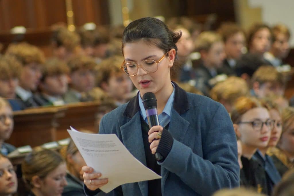 The Senior School gathered together in Chapel for a special service to mark Holocaust Memorial Day. During the service, Year 11 pupil Alma delivered a deeply moving talk about her great-grandparents who had suffered persecution in occupied France during the Second World War and connected their story to her own sense of Jewish identity. The school ended the service with an impeccably kept period of silence to remember the six million people who were killed in ‘the shoah’.